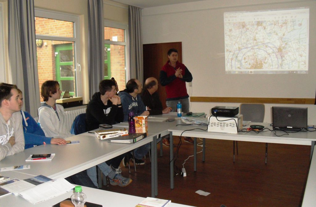 Etwa zwei Dutzend Vereinsmitglieder nutzten am Samstag die Gelegenheit, ihre Kenntnisse in Sachen Luftraumstruktur und Streckenfliegerei aufzufrischen oder zu erweitern. Kalli und Jochen, die zu dieser Trainingseinheit eingeladen hatten, staunten jedenfalls nicht schlecht, als es im Blauen Salon der Gemeinde Aukrug beinahe zu eng wurde.Im ersten Teil der Veranstaltung erläuterte Jochen anhand der ICAO-Karte einmal mehr die Luftraumstruktur unseres Fluggebiets, insbesondere die Spielregeln in der TMZ, bzw. dem Segelflugsektor Aukrug. Anhand eines Videos wurden der Einflug in die Platzrunde, mögliche Fehler und das Verhalten beim gemeinsamen Fliegen in unserem Luftraum erörtert. Die anschließende rege Diskussion zeigte wie spannend es sein kann, sich auch in der segelflugfreien Zeit mit sicherheitsrelevanten Themen im dreidimensionalen Raum auseinanderzusetzen.Der zweite Teil des Trainings widmete sich der Überlandfliegerei, von der Flugvorbereitung über verschiedene Wetterlagen und sich daraus ergebende Trainingsmöglichkeiten bis hin zu taktischen Überlegungen. Hat man sich erst einmal vom Platz wegbewegt, hängt die Länge der geflogenen Strecke nicht mehr nur noch vom Wetter ab, sondern auch davon mit welcher Geschwindigkeit man sich jeweils durch die Luft voranarbeitet. Dazu muss man nicht einen ganzen Tag lang in der Luft bleiben! Ein solches Speed-Training lässt sich dank OLC prima in „nur“ drei Stunden und im Gleitbereich des Platzes absolvieren.Die Tabelle, mit der Kalli die Beziehung zwischen verschiedenen Aufwindqualitäten und der jeweiligen Höhe des Flugweges in Relation setzte und die jeweils daraus resultierende Fluggeschwindigkeit / Gleitzahl aufzeigte, ließ manch einen nachdenklich werden: „Da muss ich den Knüppel in der kommenden Saison wohl hin und wieder etwas weiter nach vorn schieben?!“