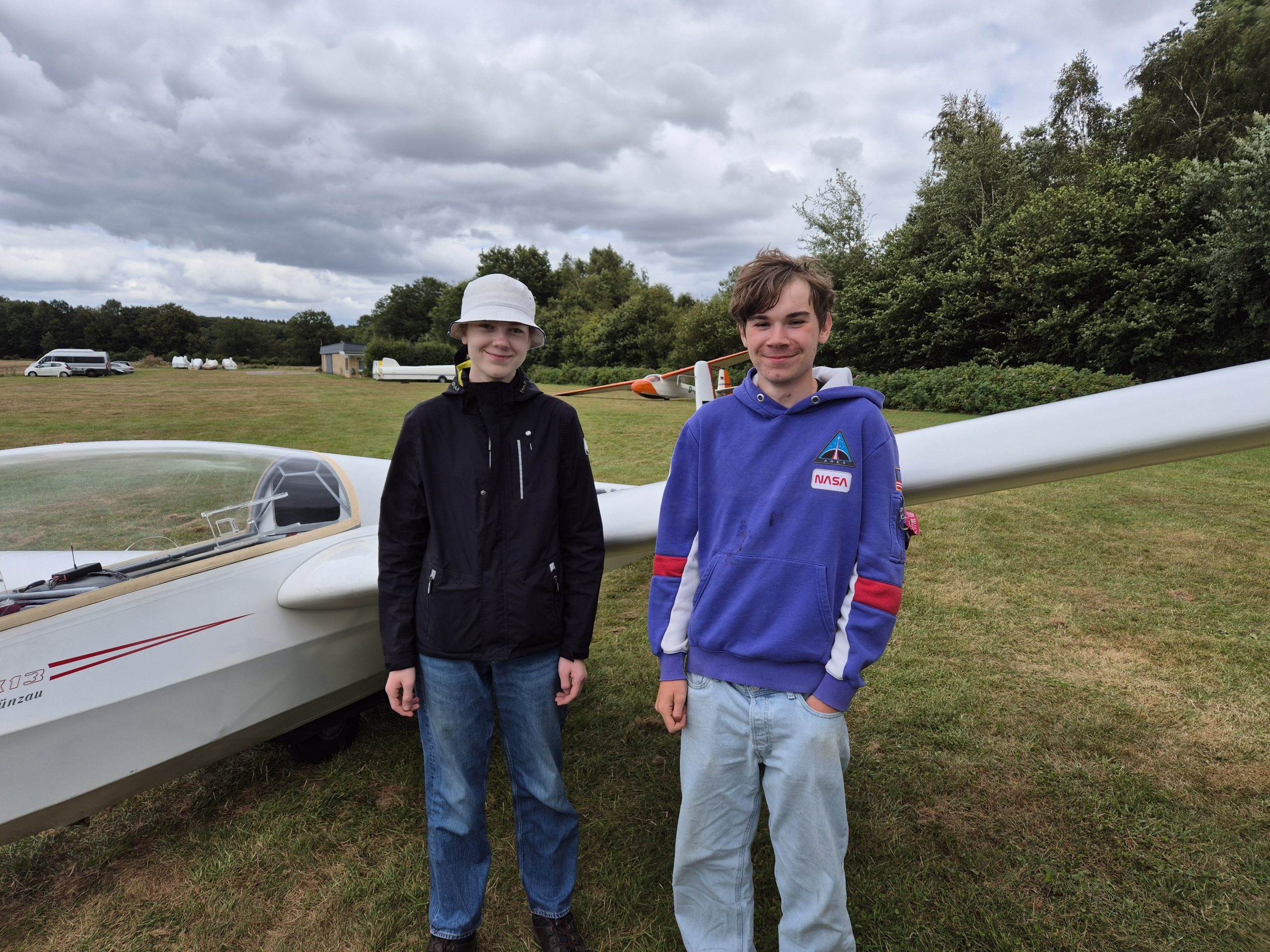 Ja, ganz einfach ist es nicht, aber es gelang Fluglehrer Peter mit dem einfachen Satz: „Erik, du kannst nachher deine C fliegen!“ Nachdem unter Christians Anleitung die Ka 8 von allen Schülern aufgerüstet wurde und Christian dann einen Checkflug gemacht hatte, war es soweit! Erik wurden noch einmal seine Übungen erläutert – wahrscheinlich gar nicht nötig – und dann absolvierte er bei nicht ganz einfachen Wetterbedingungen seine drei C-Flüge. Wobei – besonders erwähnenswert – seine stabilen Seitengleitflüge im Landeanflug allen Beobachtern am Startwagen mindestens ein „Donnerwetter!“ entlockten! (Ein „Donnerwetter“ gilt unter Fliegern als Begeisterungsschrei!) Dass die Ziellandungen in einem doch recht kleinen Landefeld sehr gut gelangen, war irgendwie schon vorher allen klar! Und wer Christians Aussage kennt, dass ein Panavia-Tornado leichter zu landen ist als eine Ka 8, kann das alles richtig einschätzen! Erik ist einfach ein „Stilles Wasser“ mit einer tollen fliegerischen Begabung! Danach gab es dann die C-Nadel, die sich Erik wirklich verdient hatte! Und dabei lächelte er schon wieder!