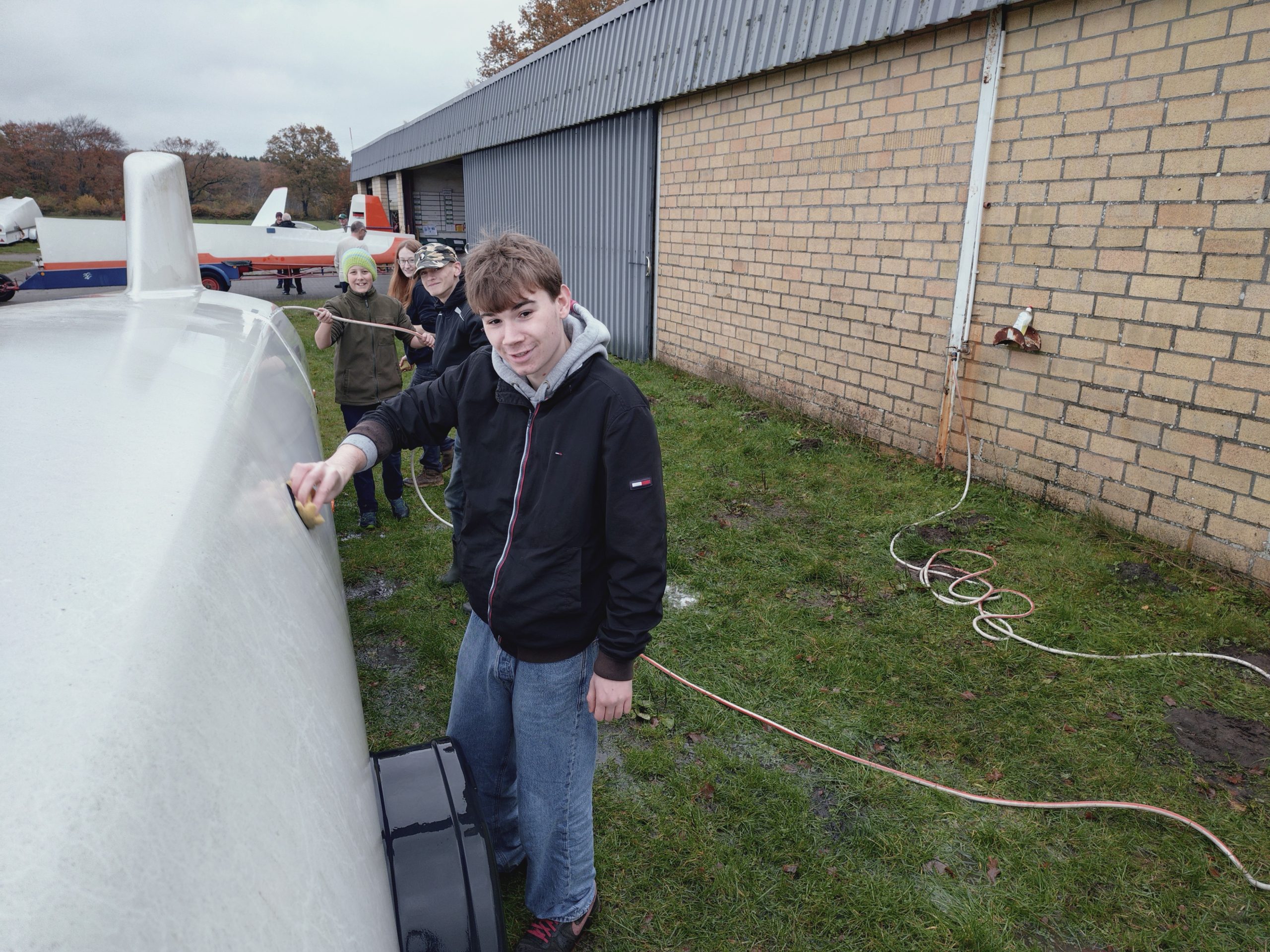 Heute war es mal wieder so weit. Die Flugsaison wurde mit dem alljährlichen „Abrüsten“ offiziell beendet. Was hier so militärisch klingt bedeutet nichts anderes, als dass alle Flugzeuge auseinander gesteckt werden um in ihren Anhängern verstaut zu werden, damit sie Stück für Stück in die Winterwartung gehen können. Zusätzlich gab es noch so allerhand zu tun wie Windsäcke abnehmen, Anhänger putzen, Dach und Dachrinne von Laub befreien, Clubräume und Halle säubern, mit Trecker und Schleppe die vielen Maulwurfshügel auf dem Platz verteilen und zu guter Letzt die Anhänger und Fahrzeuge in der Halle verstauen.